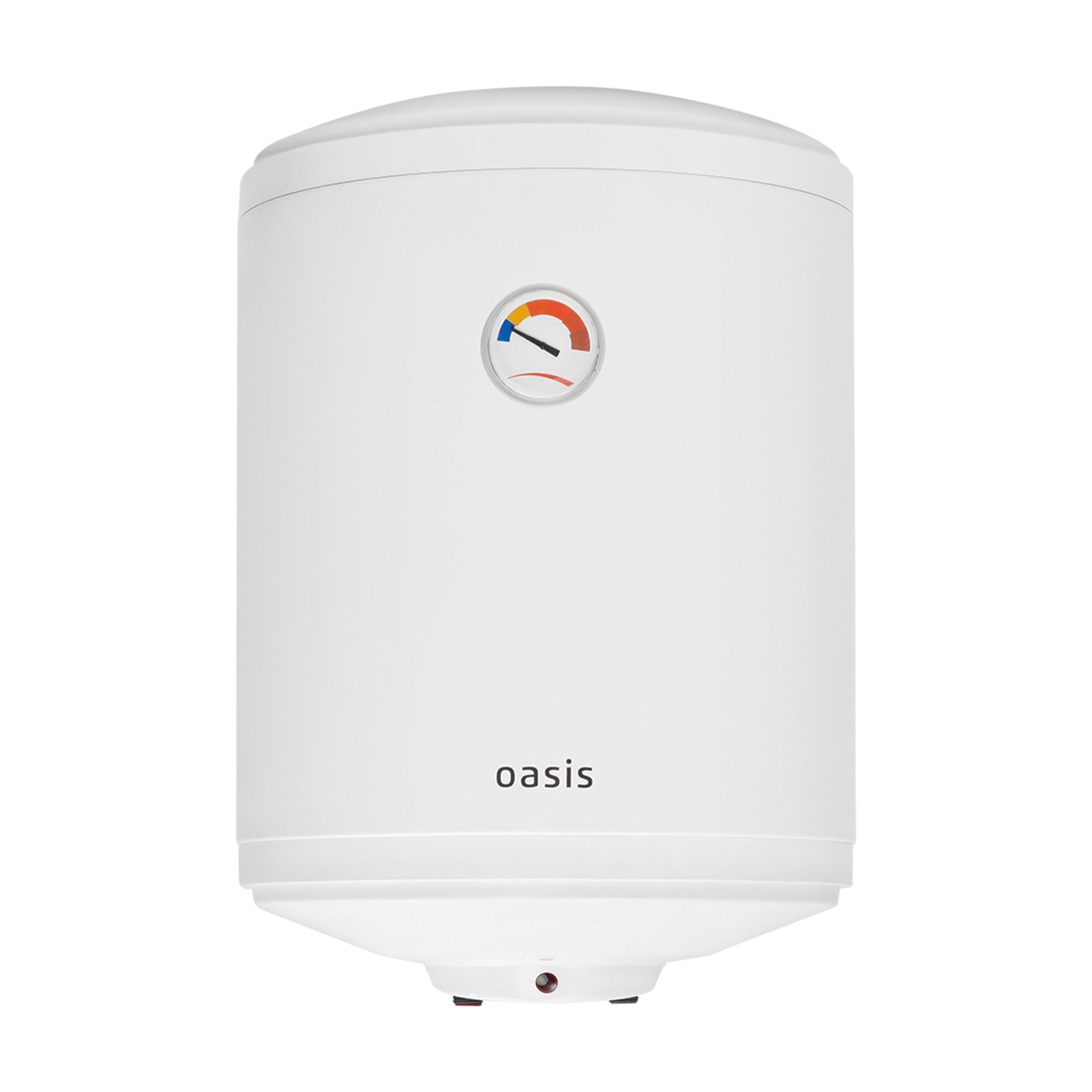 Электрический накопительный водонагреватель Oasis нагревает воду до 75 °С, далее поддерживает температуру в автоматическом режиме. Для нагрева воды используется нагревательный элемент, изготовленный из меди. Электрический накопительный водонагреватель не требует больших энергозатрат, так как нагрев воды происходит постепенно. Даже 100-литровые баки Oasis потребляют не более 1,5 кВт. Небольшое электропотребление позволяет установить прибор практически в любом помещении - квартиры, частные дома и коттеджи.