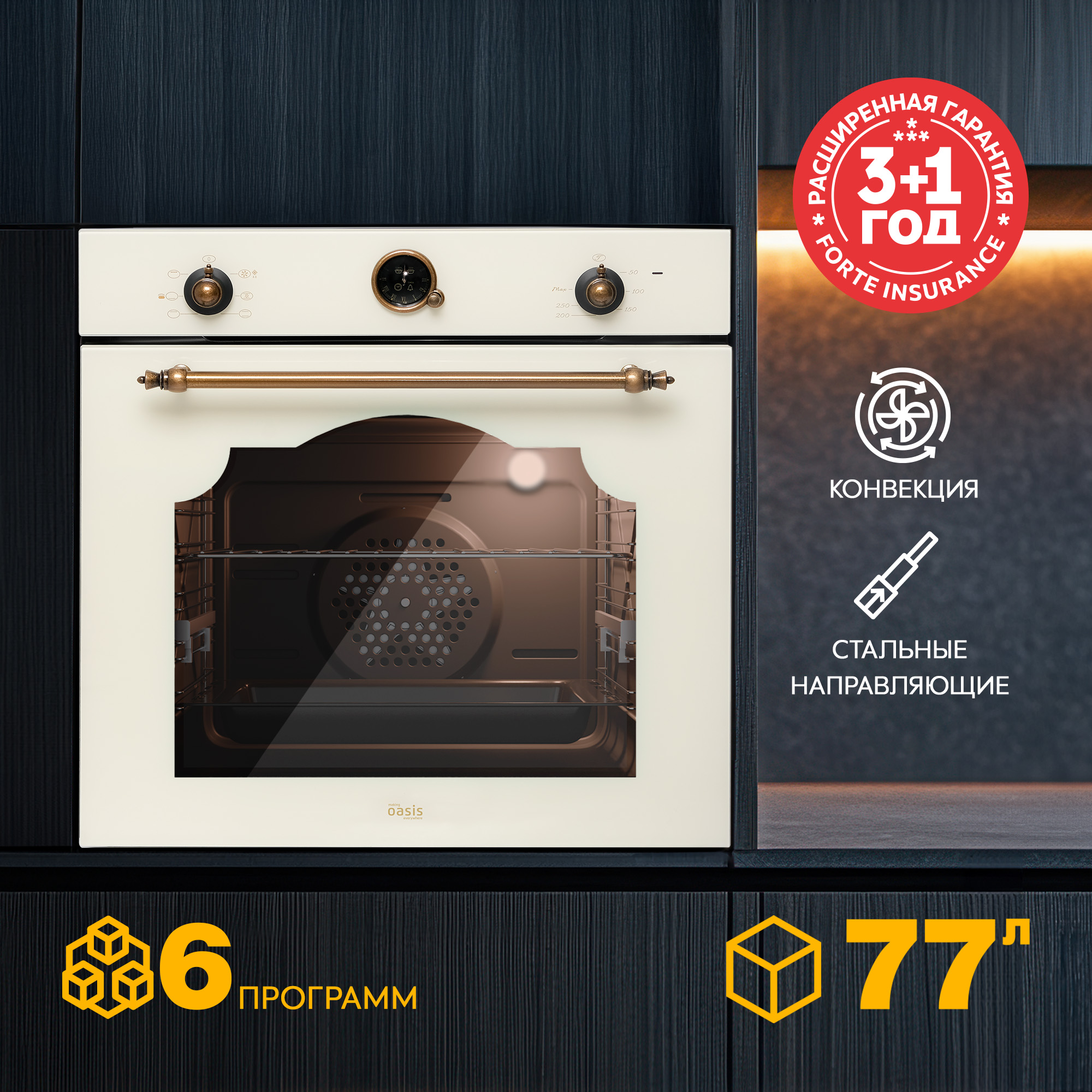 6 режимов работы открывают простор для кулинарных экспериментов. Аналоговый таймер с циферблатом обеспечивает интуитивно понятное и надежное управление без сложных электронных настроек. С объёмом внутренней камеры 77 литров можно готовить несколько блюд одновременно для большого застолья. Конвекция обеспечивает равномерное приготовление благодаря циркуляции горячего воздуха по всей камере духовки. Гриль добавляет мясу, рыбе и овощам аппетитную золотистую корочку, а также быстро подрумянивает выпечку, придавая ей привлекательный вид.