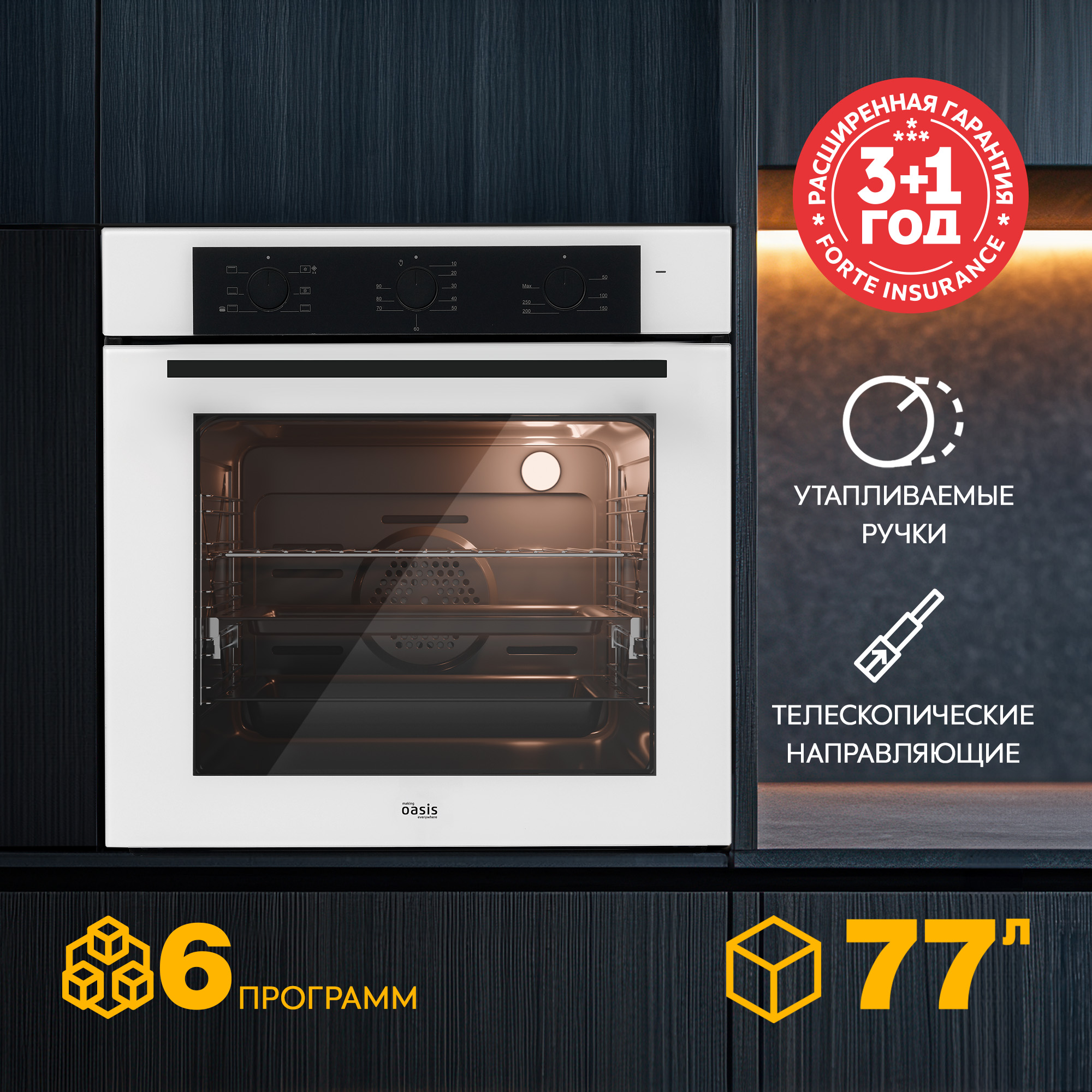 6 режимов работы открывают простор для кулинарных экспериментов. Механический таймер обеспечивает интуитивно понятное и надежное управление без сложных электронных настроек. С объёмом внутренней камеры 77 литров можно готовить несколько блюд одновременно для большого застолья. Конвекция обеспечивает равномерное приготовление благодаря циркуляции горячего воздуха по всей камере духовки. Гриль добавляет мясу, рыбе и овощам аппетитную золотистую корочку, а также быстро подрумянивает выпечку, придавая ей привлекательный вид.