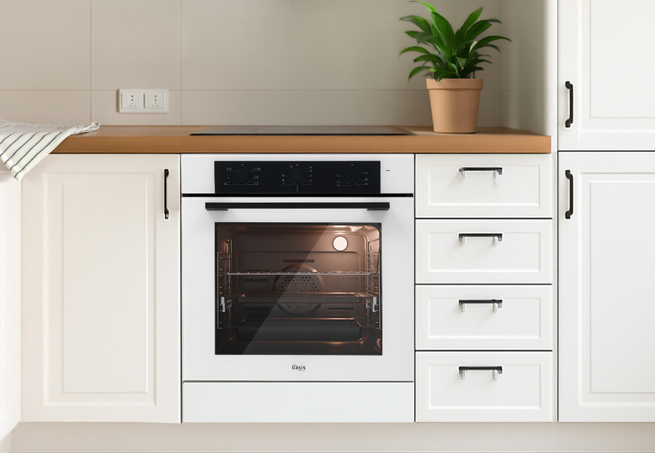 Электрический встраиваемый духовой шкаф making Oasis everywhere – решение для тех, кто ценит удобство и современный подход к приготовлению пищи. Утапливаемые ручки позволяют устройству гармонично вписаться в кухонный гарнитур и облегчают уход за панелью управления.