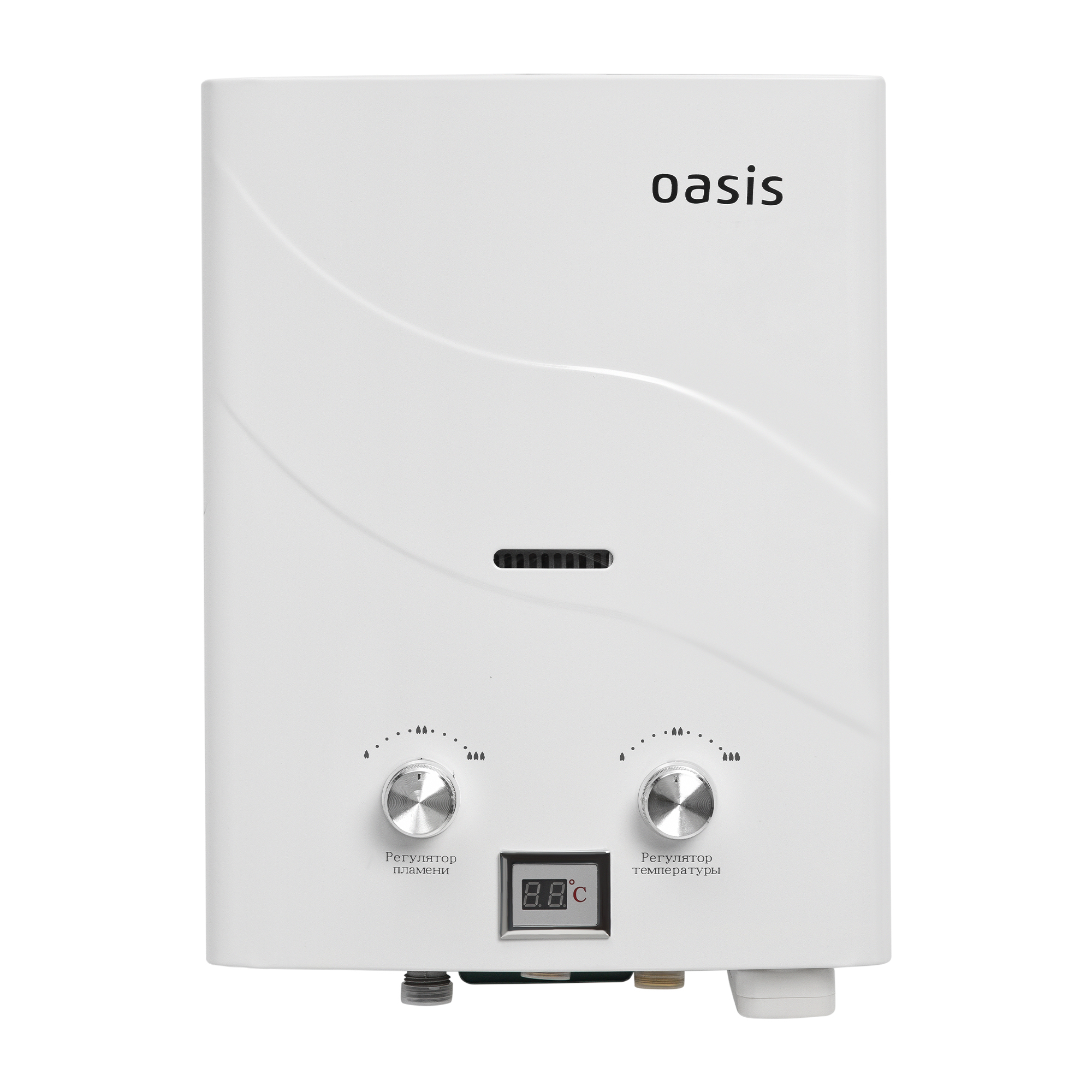 Газовый проточный водонагреватель Oasis B-12W служит для обеспечения горячего водоснабжения. От остальных водонагревателей Oasis этот прибор отличается отсутствием дымохода. Бездымоходные газовые проточные водонагреватели способны работать при низком давлении в системе водоснабжения. На лицевой панели газового проточного водонагревателя Oasis расположен ЖК-дисплей, который обеспечивает удобную индикацию температуры горячей воды и контроль за работой прибора.