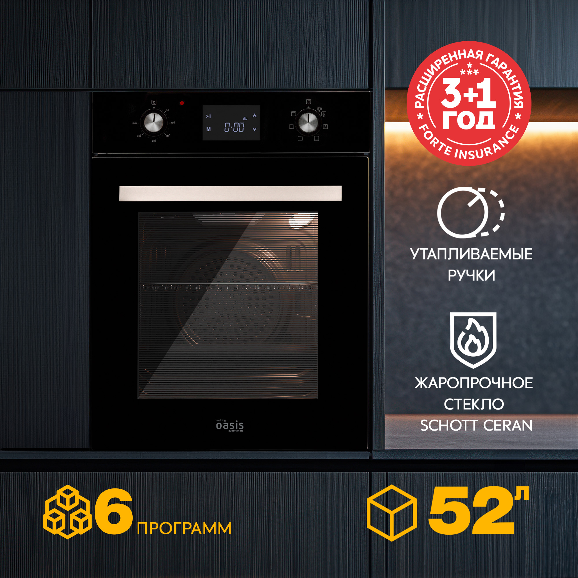 6 режимов работы открывают простор для кулинарных экспериментов. Сенсорный таймер предоставляет полный контроль над процессом готовки. С объёмом внутренней камеры 52 литра можно готовить несколько блюд одновременно для большого застолья. Конвекция обеспечивает равномерное приготовление благодаря циркуляции горячего воздуха по всей камере духовки. Гриль добавляет мясу, рыбе и овощам аппетитную золотистую корочку, а также быстро подрумянивает выпечку, придавая ей привлекательный вид.
