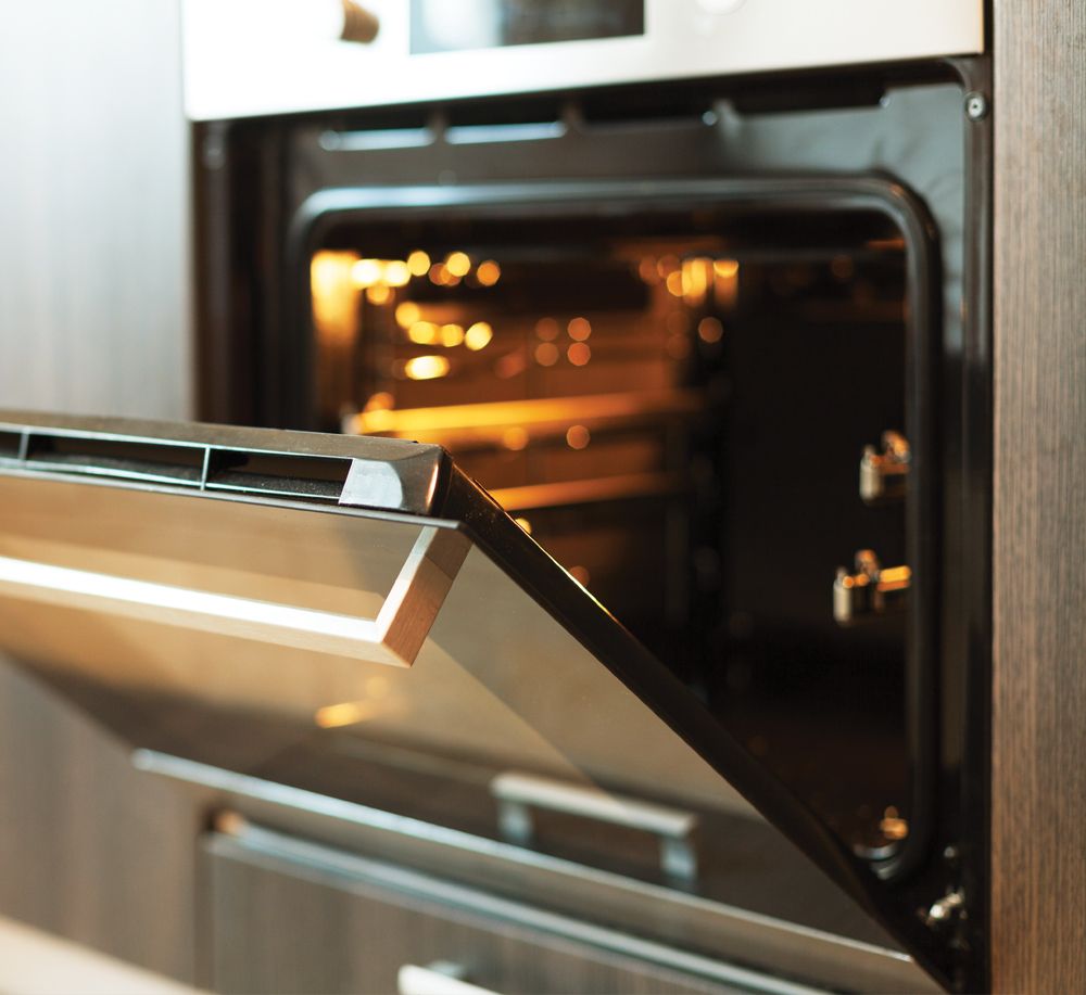 Двойное жаропрочное стекло эффективно снижает температуру внешней поверхности, предотвращая ожоги, а его прозрачность позволяет контролировать процесс готовки. Покрытие Low-E повышает энергоэффективность, удерживая тепло внутри. Съёмное внутреннее стекло упрощает чистку прибора. Стальные направляющие обеспечивают плавное и безопасное выдвижение даже тяжёлых противней. Тангенциальное охлаждение создаёт вокруг духовки воздушный барьер, который препятствует утечке тепла, защищая от перегрева как саму духовку, так и кухонную мебель.