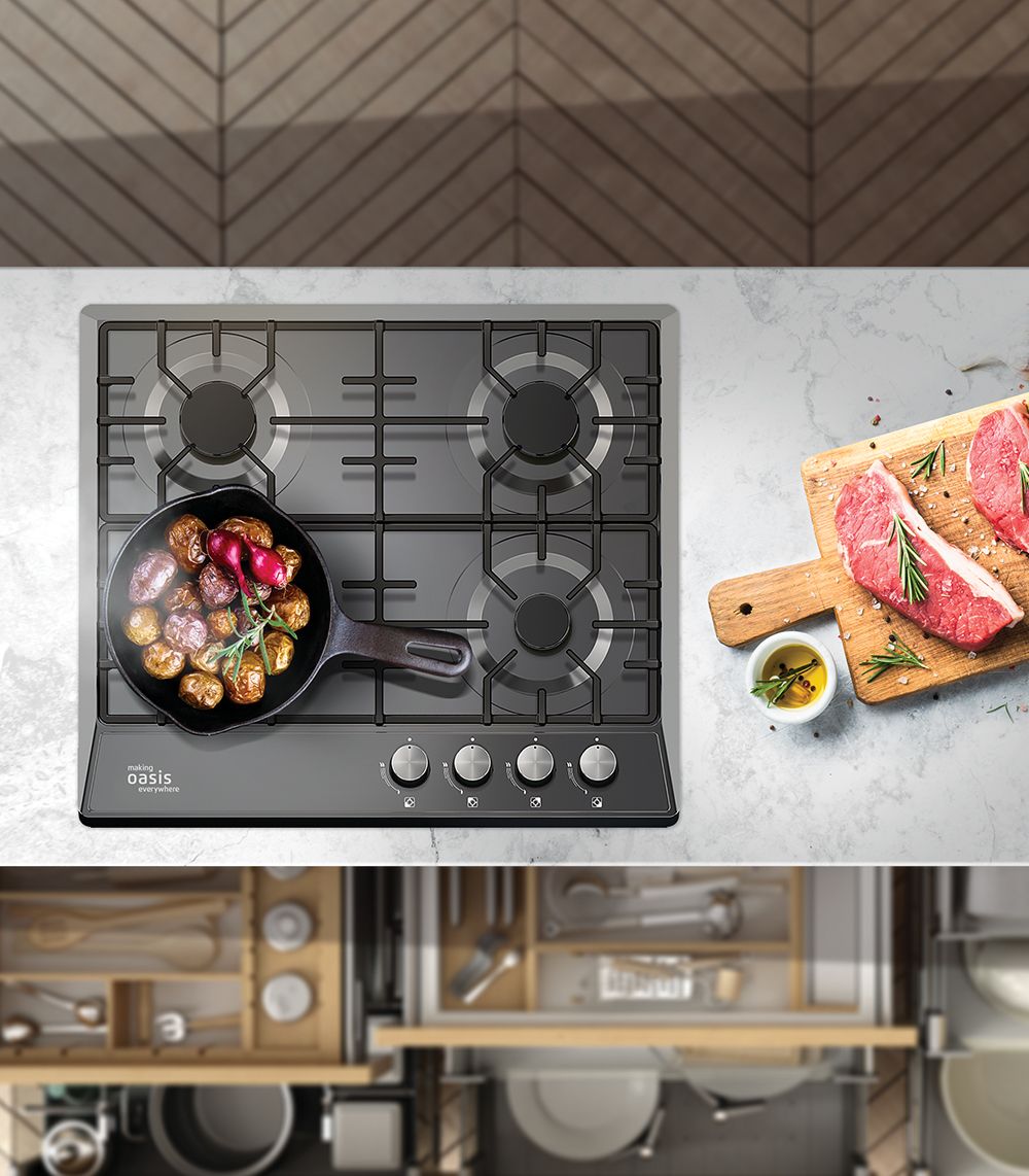 Все газовые варочные панели «making Oasis everywhere» оснащены системой автоподжига и «Газ-контроля» для безопасного и комфортного использования в течение всего срока эксплуатации прибора. Линейка газовых варочных панелей представлена стеклянными и металлическими моделями, которые подойдут под дизайн любой кухни.